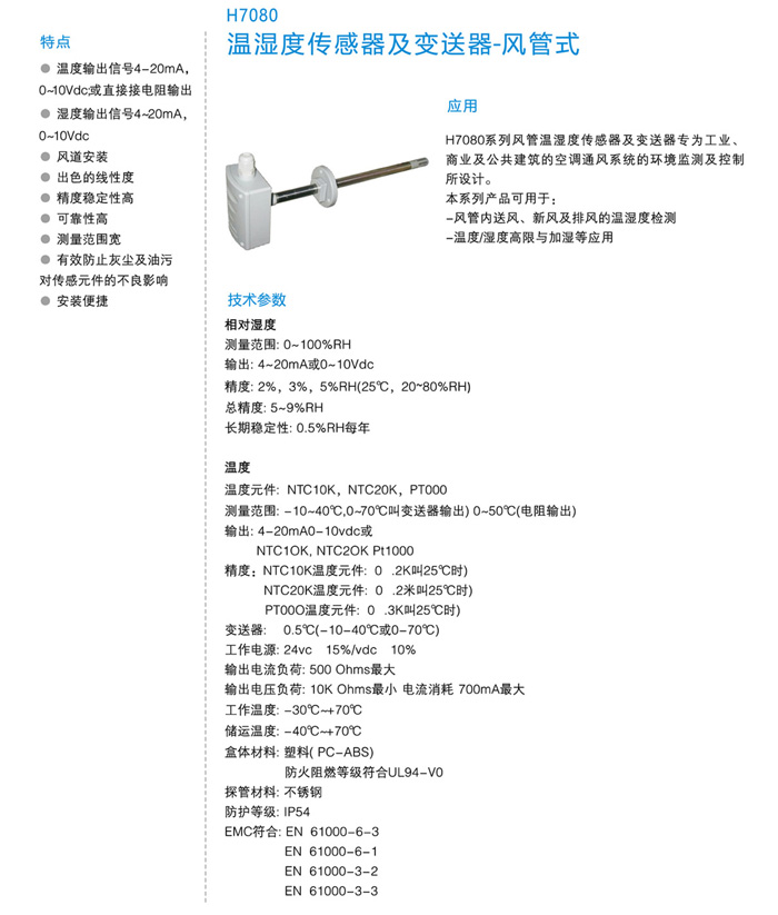 温湿度传感器及变送器-风管式
